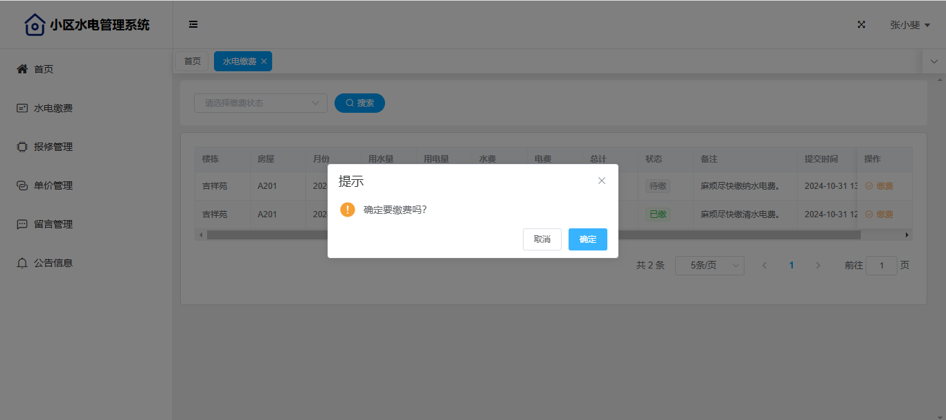 基于SpringBoot+Vue前后端分离的小区水电管理系统,本人原创开发。